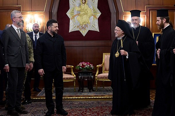 Президент Украины Владимир Зеленский провел встречу со Вселенским патриархом Варфоломеем в Стамбуле.