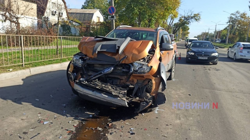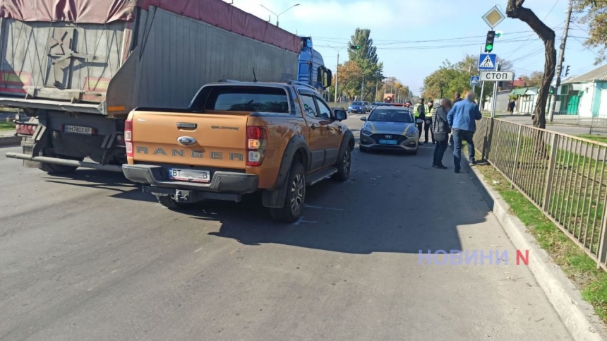 Вдень у вівторок, 21 жовтня, на вул. Кузнецькій у Миколаєві зіткнулися одразу три автомобілі: Ford Ranger, рефрижератор Citroen та Hyundai Sonata.