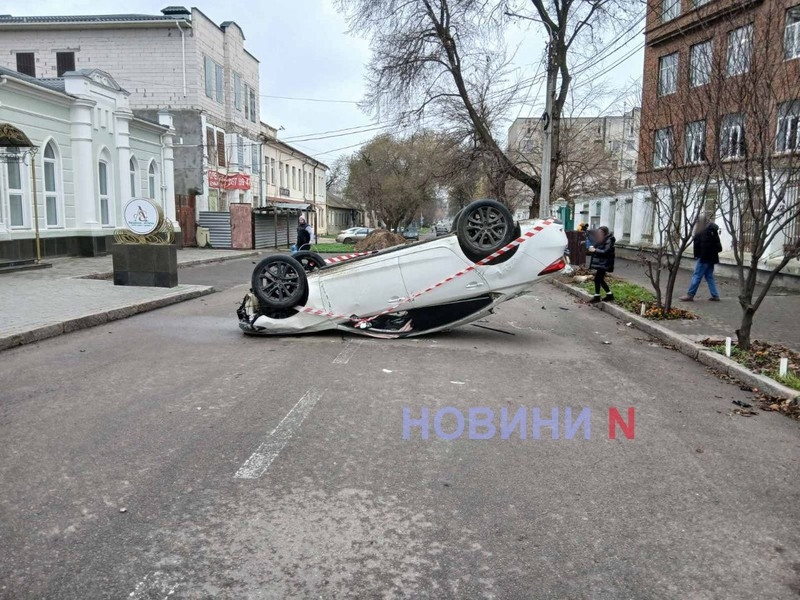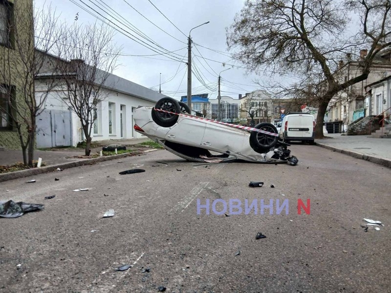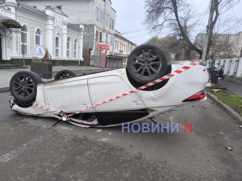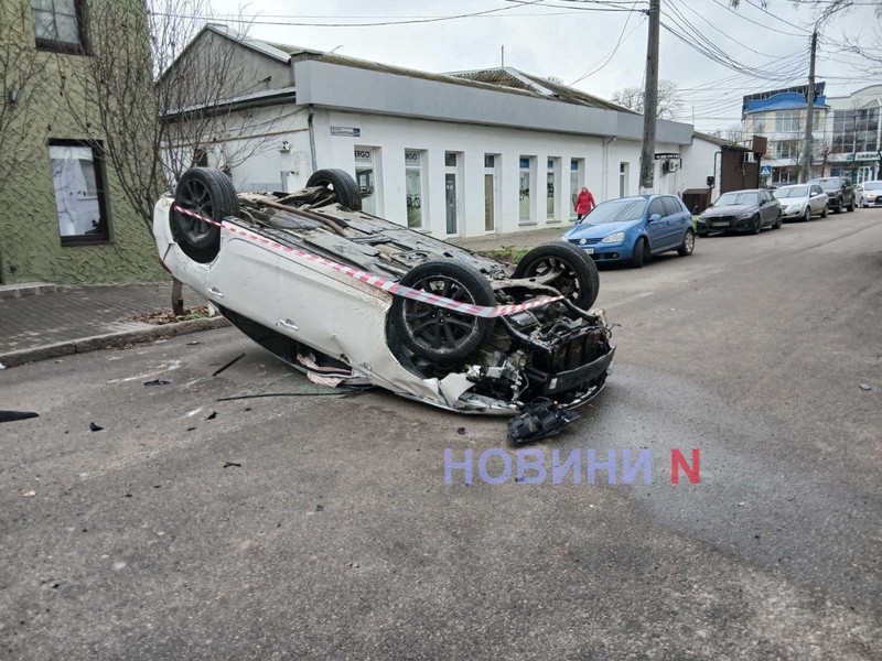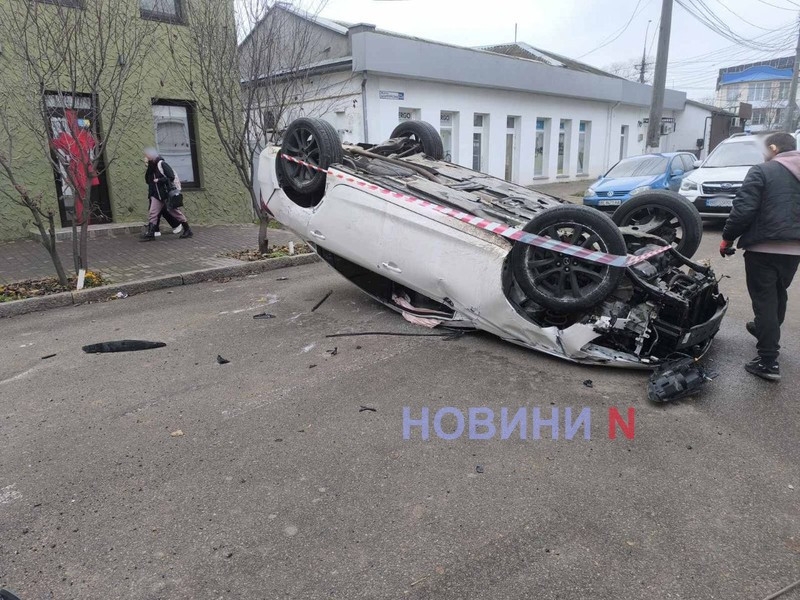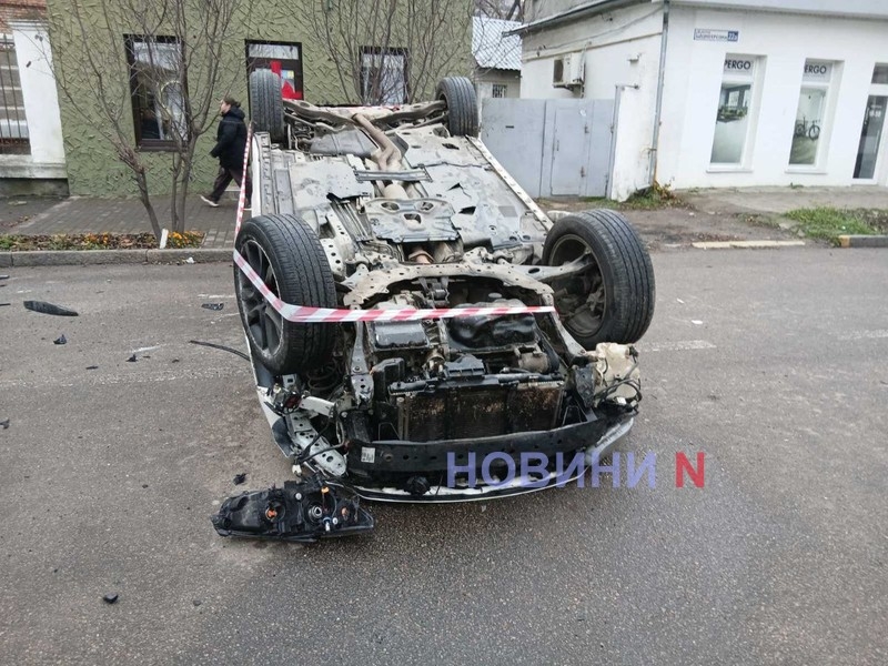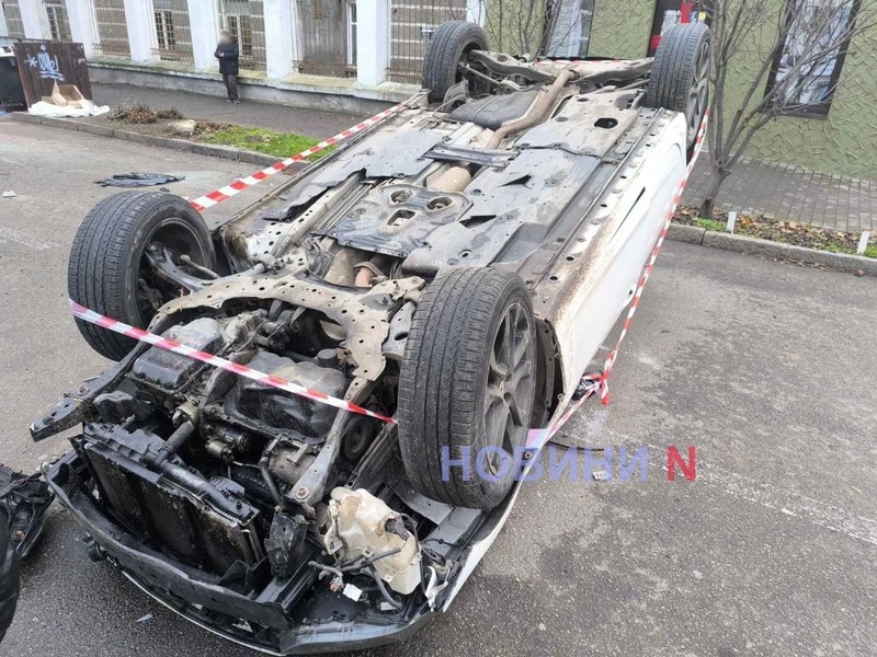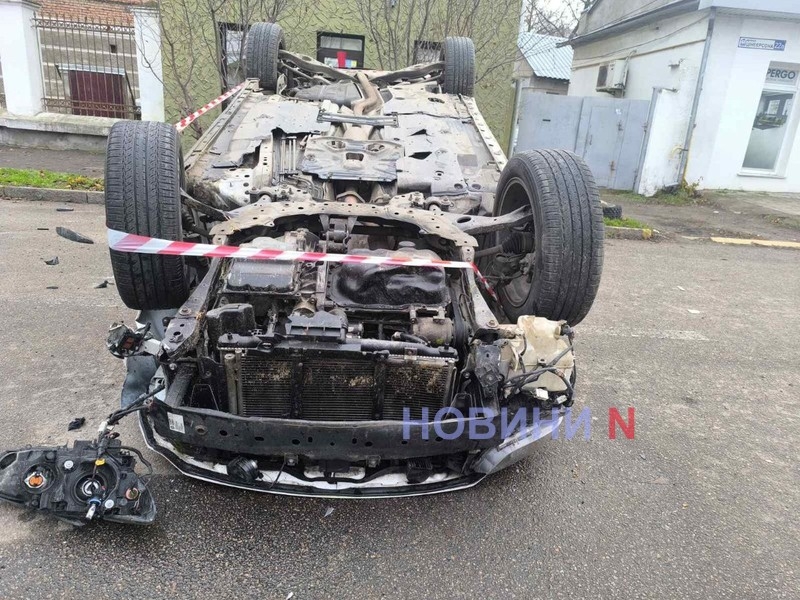 «Мазда» перелетіла яму і перекинулася на дах у Миколаєві: водій був п'яний (фото, відео)