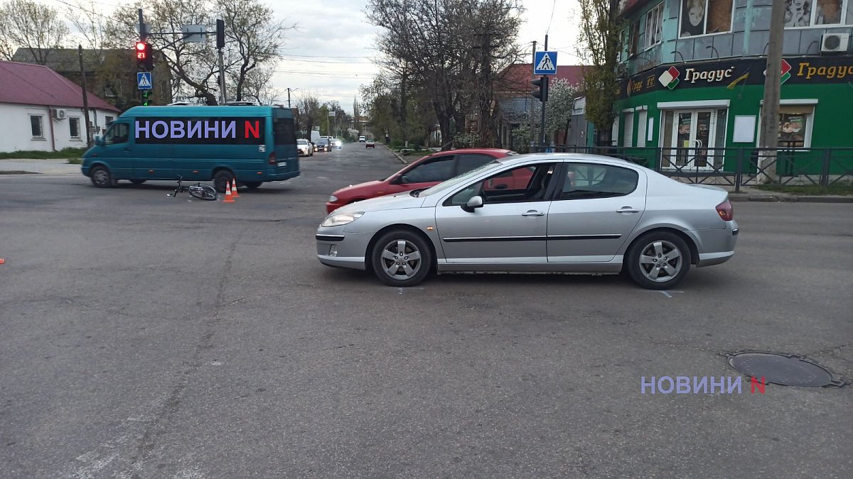 Увечері у п'ятницю, 17 квітня, на пр. Центральному у Миколаєві автомобіль Peugeot 407 збив велосипедиста.