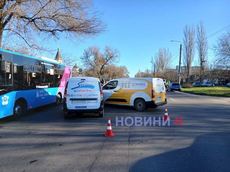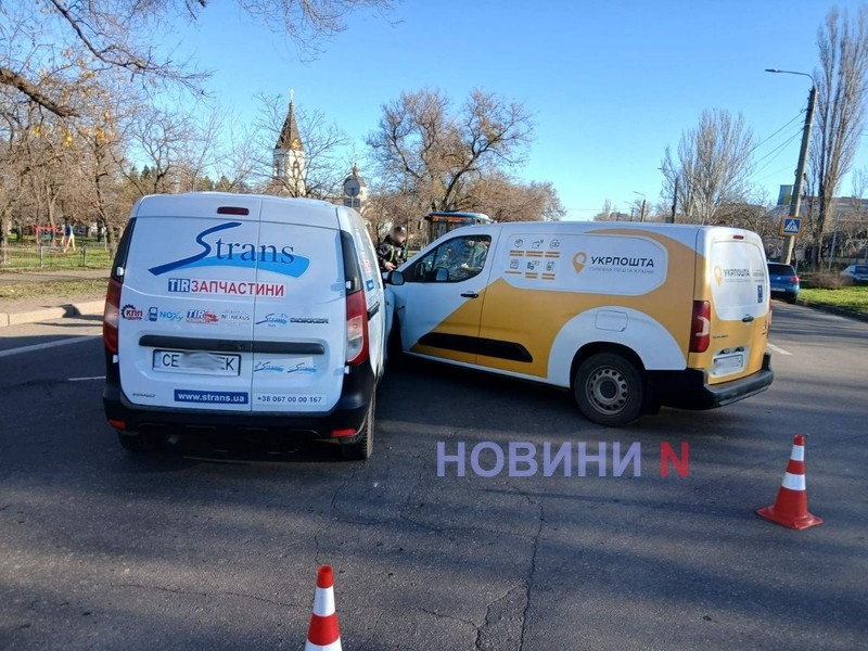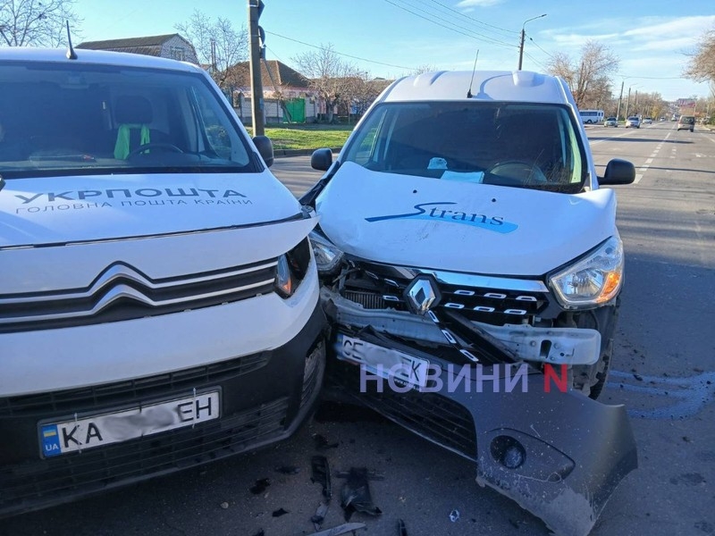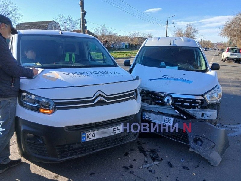 Вранці у вівторок, 25 листопада, на перетині вулиць Троїцька та Вінграновського у Миколаєві зіткнулися автомобілі Renault Dokker та Citroen Berlingo «Укрпошти».