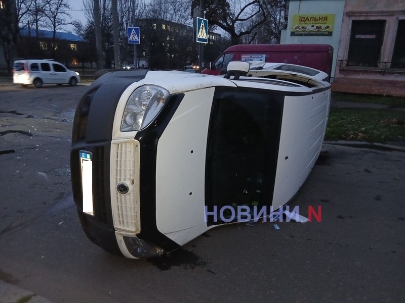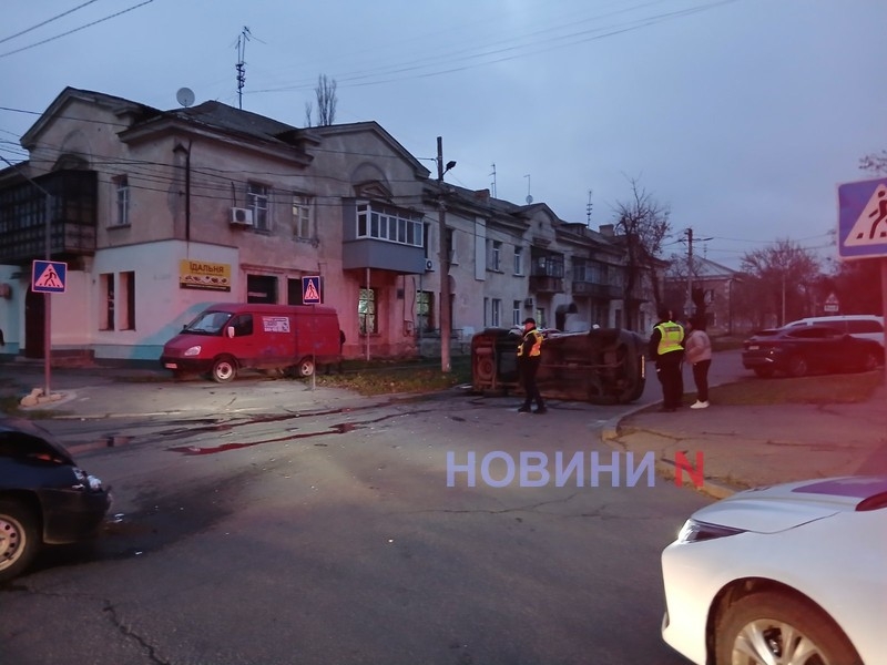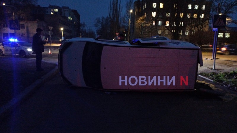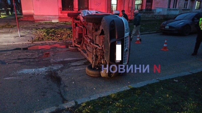 Автомобіль перекинувся на перехресті у Миколаєві: водія забрала «швидка»