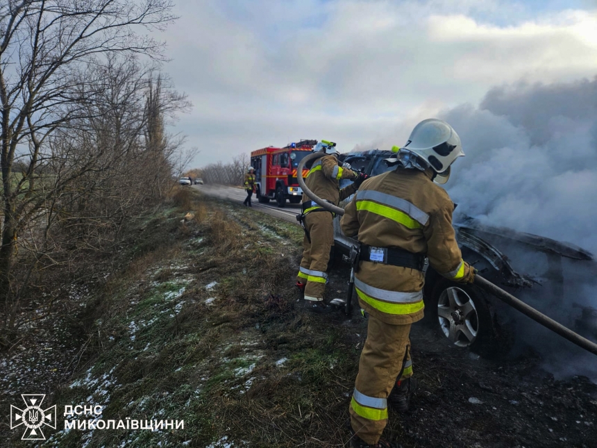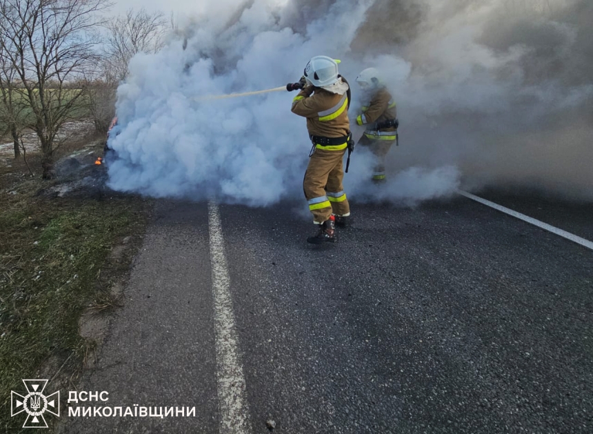 Автомобіль спалахнув на ходу на трасі в Миколаївській області (фото)