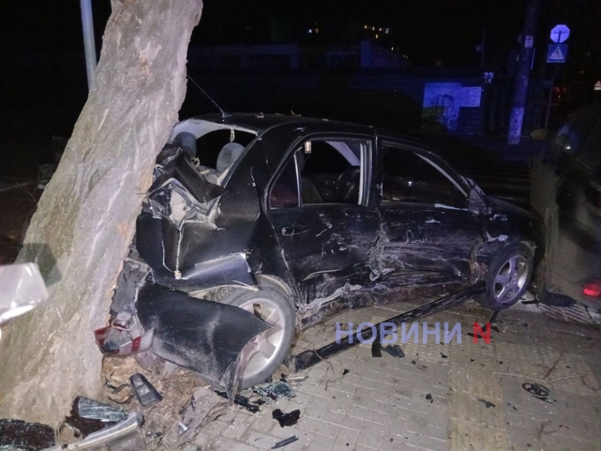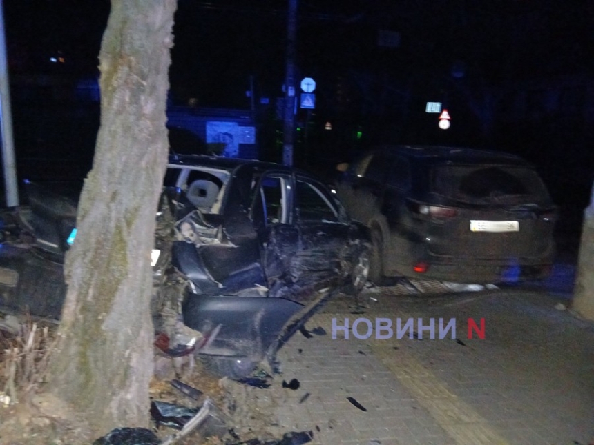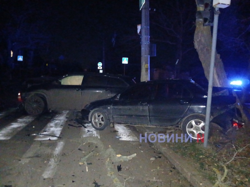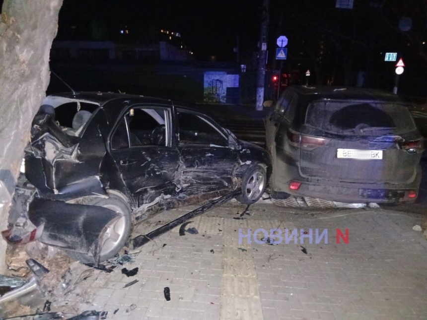 ДТП у центрі Миколаєва: «Міцубісі» зіткнувся з «Тойотою» та врізався у дерево