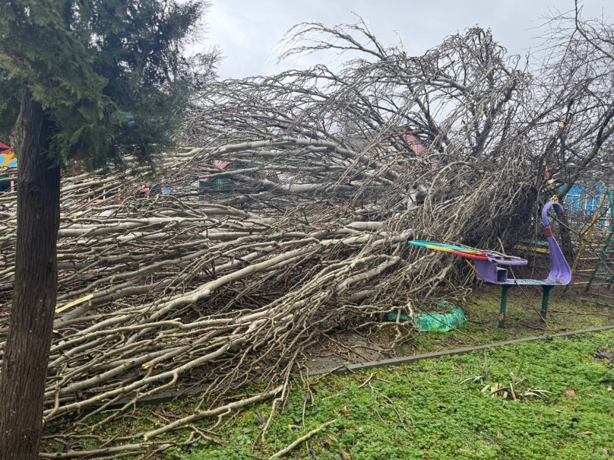 Фахівці розпилили та прибрали дерева, які впали на дитячі майданчики, проїжджі частини, пішохідні доріжки, перекривали під'їзди до житлових будинків та пошкодили припарковані автомобілі.
