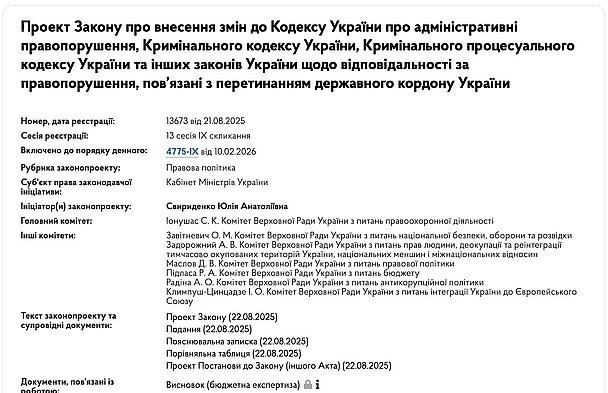 Документ зареєстрований у парламенті ще у серпні 2025 року, а з лютого 2026-го включений до порядку денного. На даний момент він знаходиться на стадії ознайомлення.