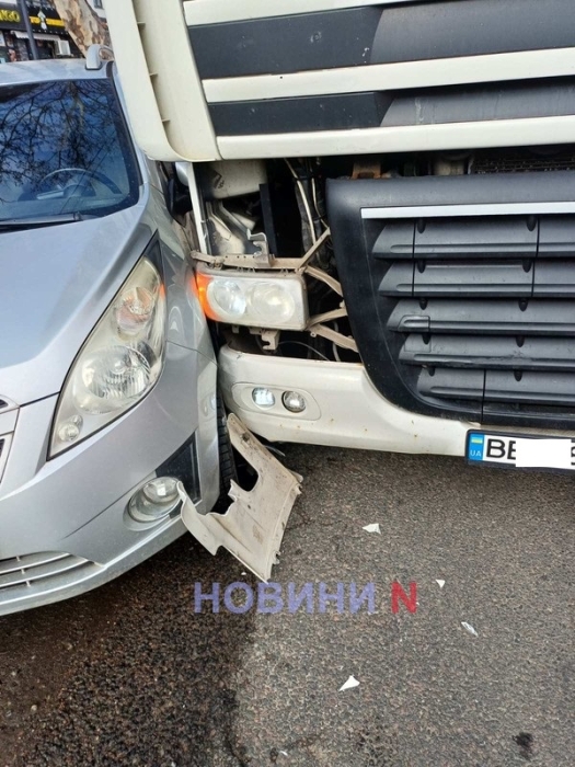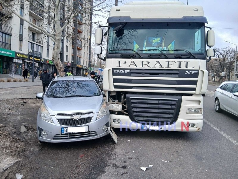 Вдень у вівторок, 17 лютого, на проспекті Героїв України в Миколаєві зіткнулися великовантажний автомобіль «ДАФ» та легковик «Шевроле».