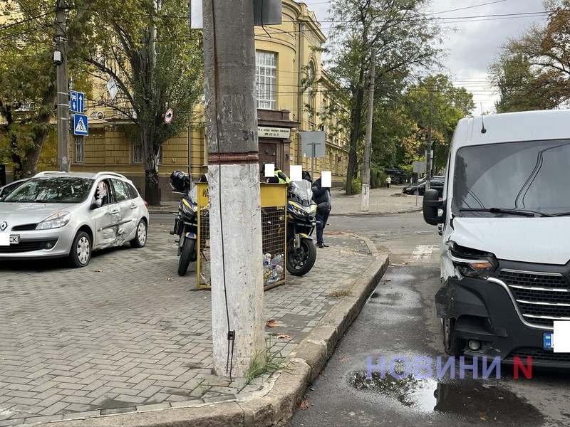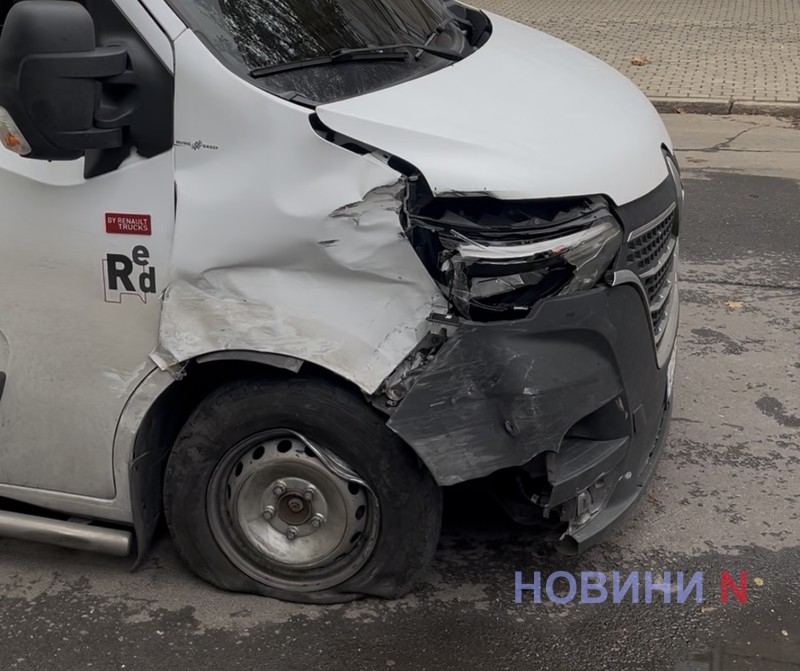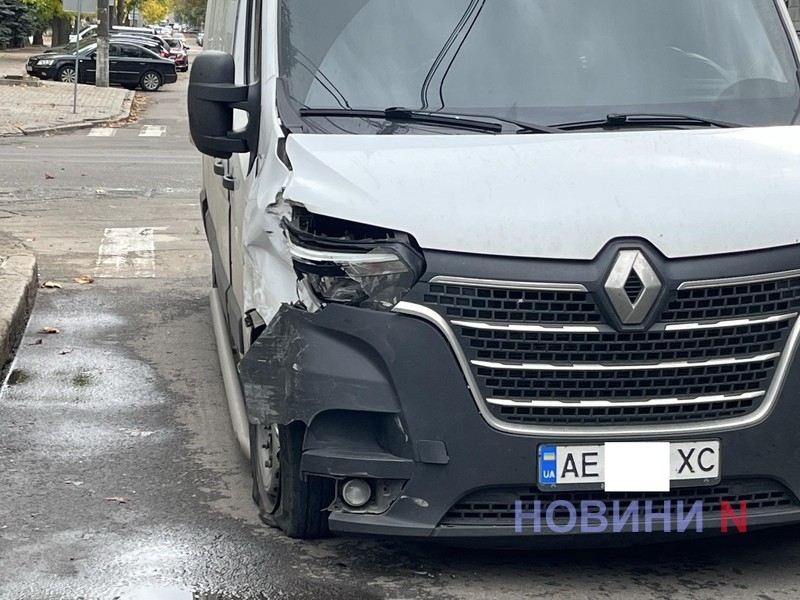 Вдень у четвер, 9 жовтня, на перетині вулиць Великої Морської та Олексія Вадатурського (Фалєєвської) у Миколаєві зіткнулися легковий автомобіль Renault Clio та мікроавтобус Renault Master.