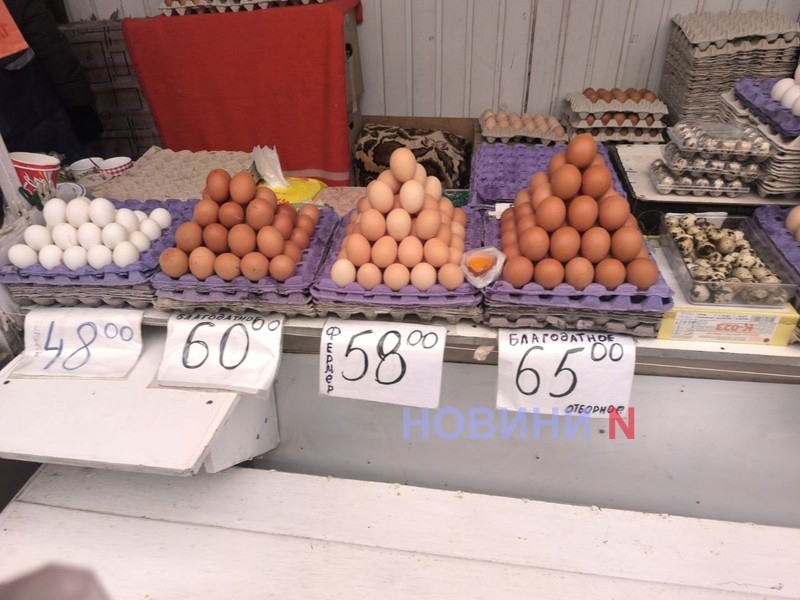 Відразу тут продають домашні яйця – за десяток брали 80 гривень, ціни за фермерські варіювалися від 48 гривень до 70 гривень.