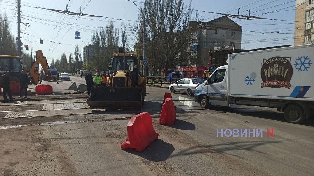 У Миколаєві ремонт трамвайного полотна на жвавому перехресті: величезні затори (фото, відео)