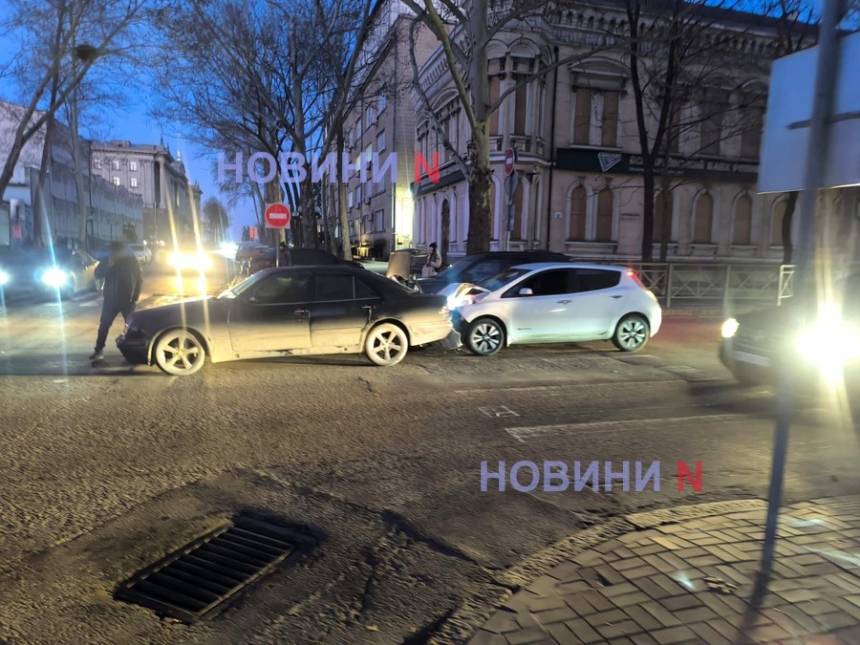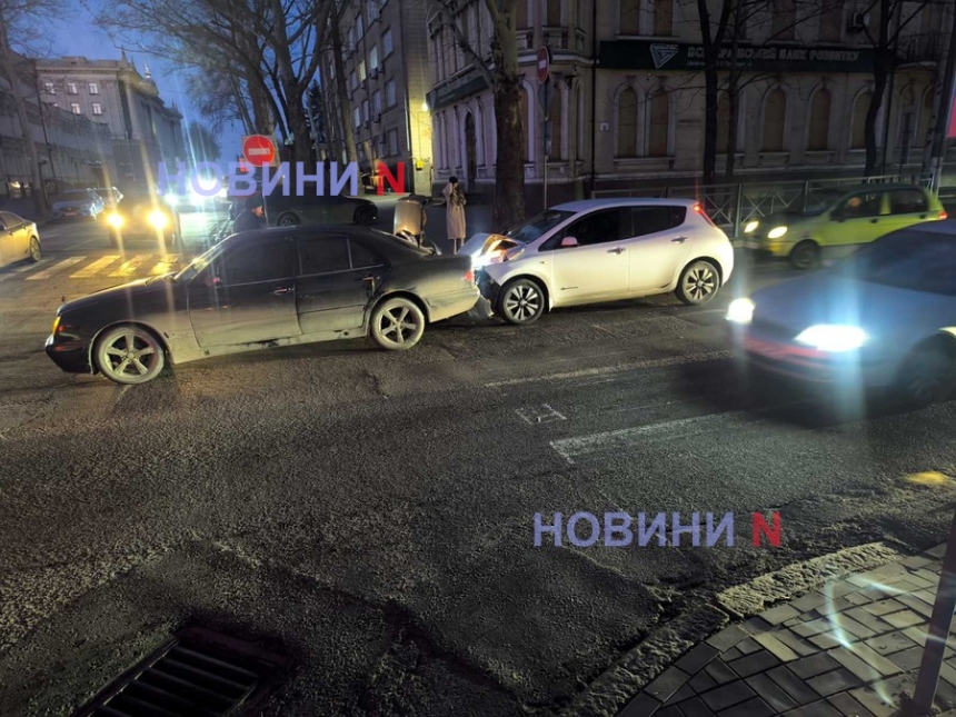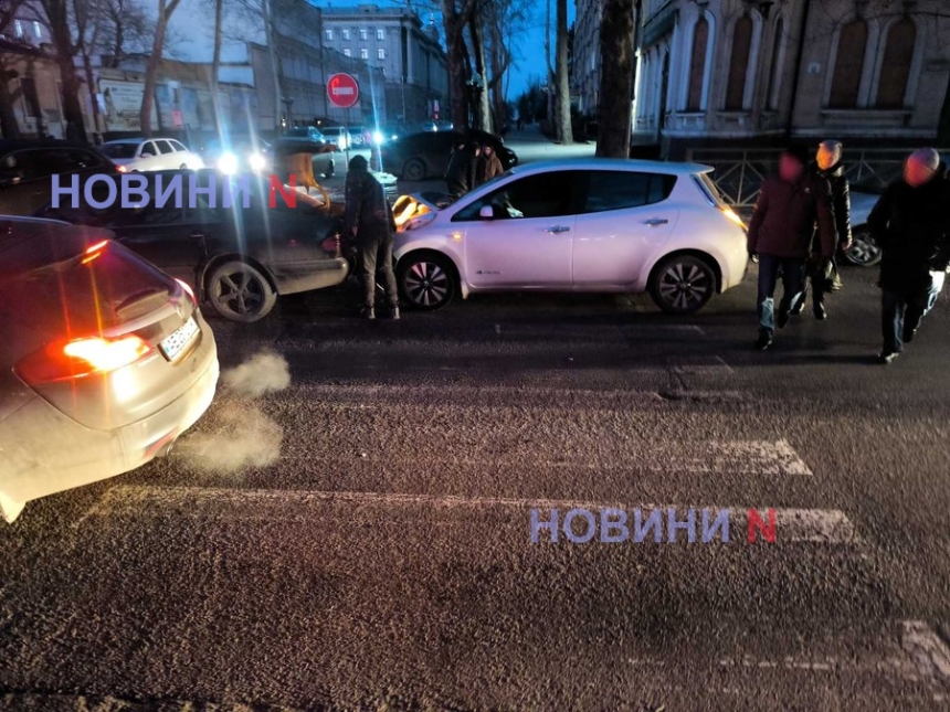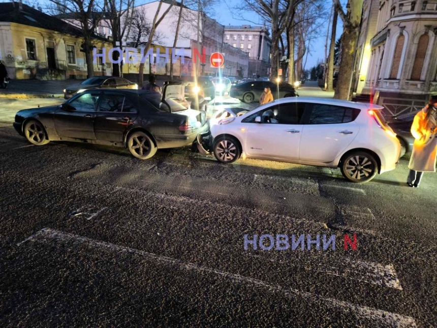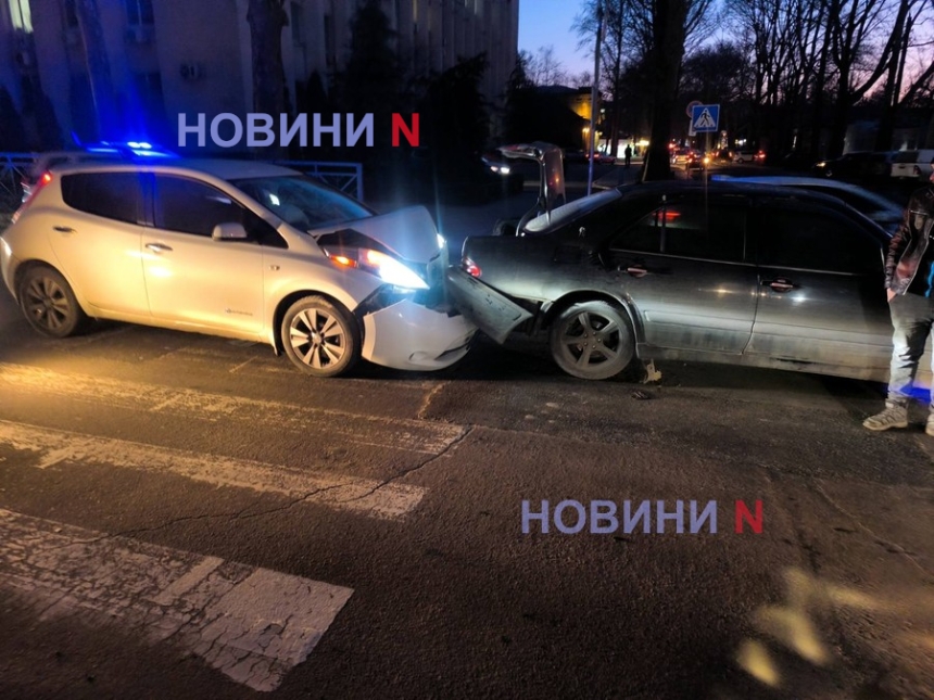 Увечері у вівторок, 20 січня, на перетині вулиць Вадима Благовісного (Нікольської) та Героїв Рятувальників (Лягіна) у Миколаєві зіткнулися легкові автомобілі Nissan Leaf та Mercedes.