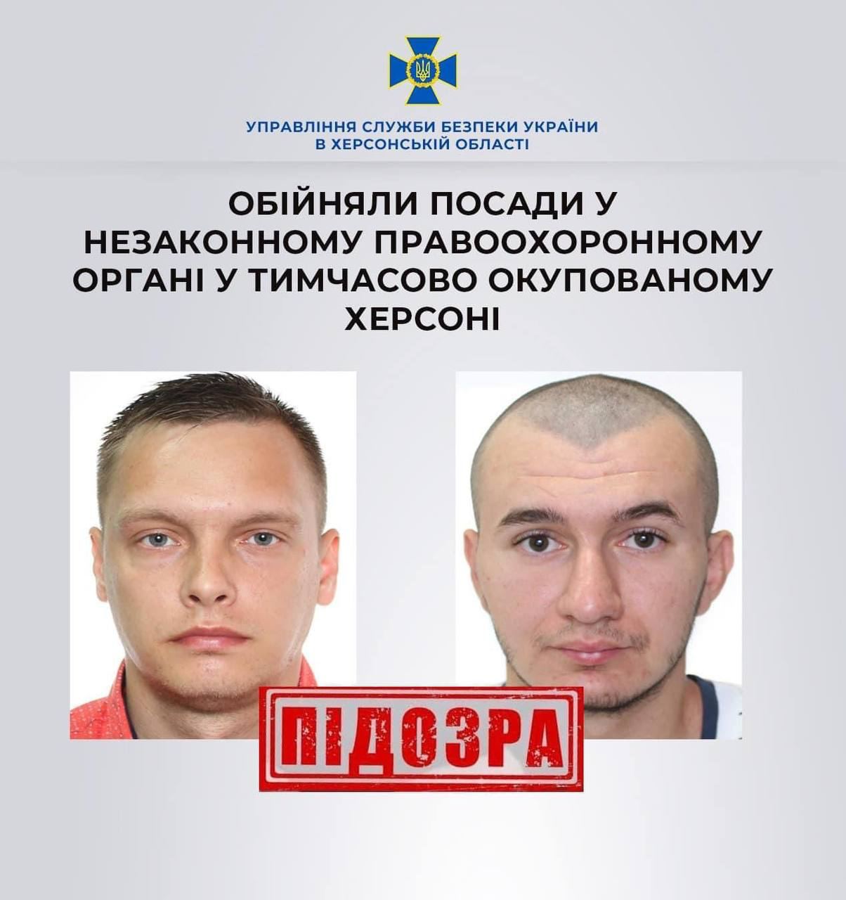 Служба безпеки викрила двох херсонців, які добровільно обіймали посади у незаконному правоохоронному органі у тоді ще тимчасово окупованому Херсоні.