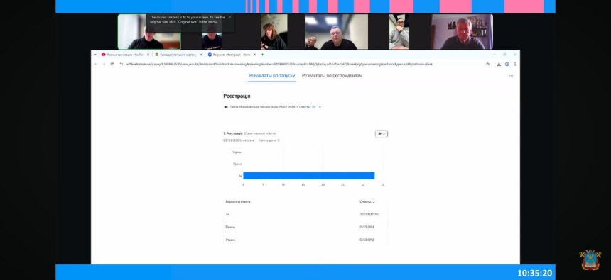Для участі у засіданні зареєструвалося 33 депутати.