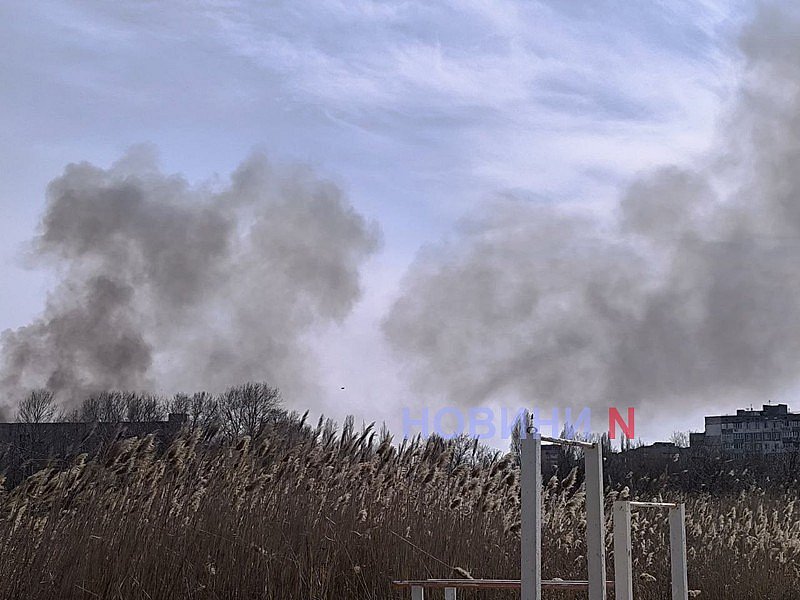 Над центром Миколаєва піднімається стовп диму – горить очерет (відео)