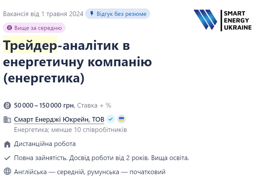 До прикладу, трейдер в енергетичній компанії може заробляти до 150 тис. грн.