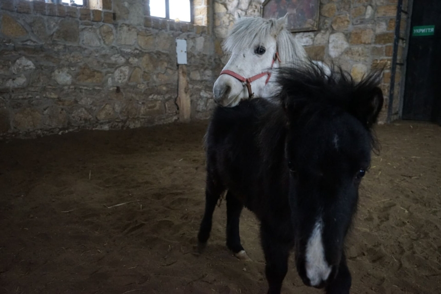 На Херсонщині тварини перебували під постійним обстрілом та загрозою. Зараз поні риються у піску манежу, мають дах над головою та необхідний догляд.