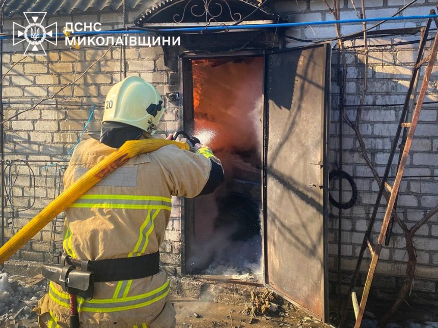 - м. Новий Буг – на території приватного домоволодіння спалахнули гараж, автомобіль Daewoo Lanos та літня кухня (24 кв. м);