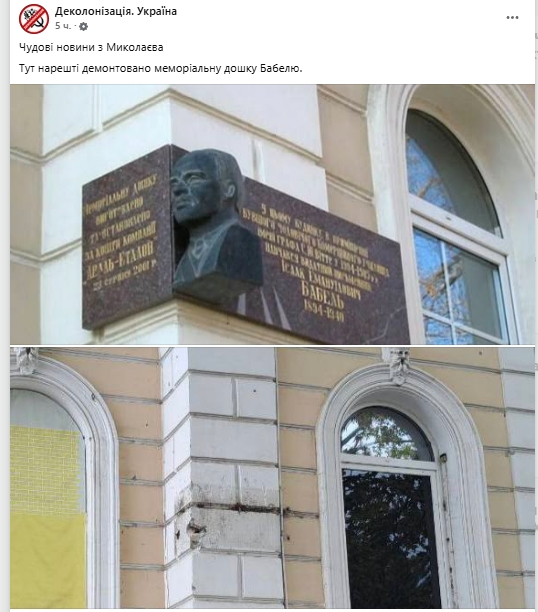 У Миколаєві демонтували меморіальну дошку Бабелю