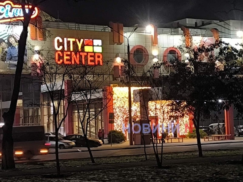 На «Сіті-центрі» працює не лише підсвічування будівлі та світиться вивіска, а й сяє додаткова святкова ілюмінація. На території ТРЦ також горять рекламні сіті-лайти із назвами представлених у торговому центрі магазинів та брендів.