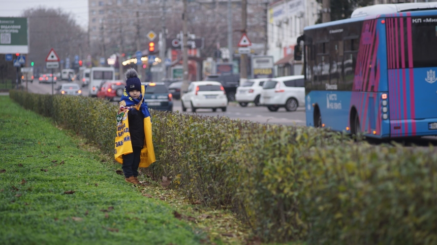 Частина людей стояла вздовж бульварної частини проспекту, частина закликала водіїв сигналити.