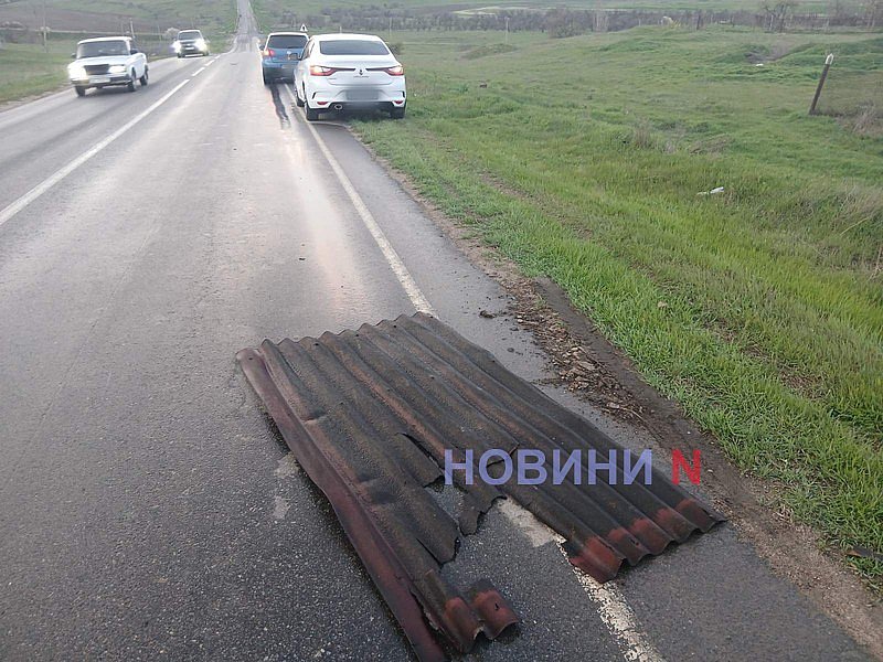 Автомобіль рухався у бік Миколаєва. Біля Коренихи із зустрічного транспортного засобу злетів лист шиферу, який «прилетів» у «Рено».