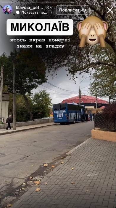 У Миколаєві невідомий зняв номерні знаки з гастрольного автобусу співачки Клавдії Петрівни.