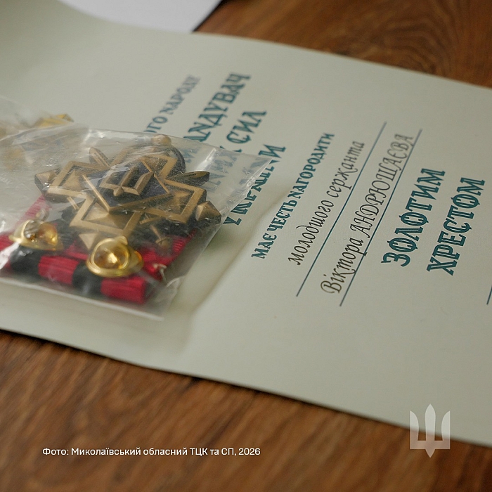 Ордени «За мужність» III ступеня, «Хрест героя» та нагрудний знак «Золотий хрест» Віктора Андрюшаєва передали його дружині Валентині.