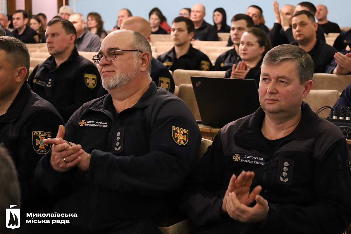 Рятувальників привітали секретар міської ради Дмитро Фалько, начальник Миколаївської ОВА Віталій Кім, голова обласної ради Антон Табунщик, а також представники правоохоронних органів та військові.
