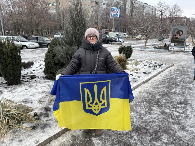 Учасниця акції Валентина прийшла підтримати інших — її Вадимового сина цього тижня повернули з полону.