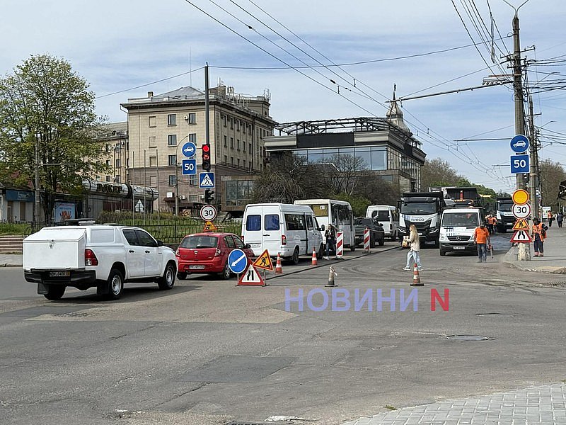 У четвер, 23 квітня, на Центральному проспекті в Миколаєві проводяться ремонтні роботи на проїжджій частині — рух утруднений.