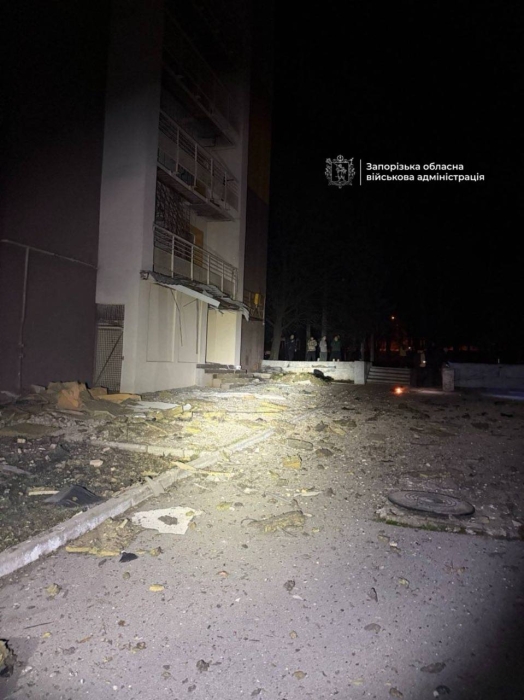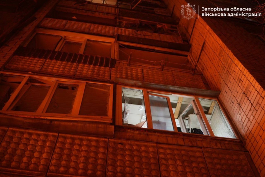 Внаслідок російської атаки пошкоджено щонайменше чотири багатоповерхівки у різних районах Запоріжжя. Пожежа на підприємстві та в магазині. Попередньо відомо про двох поранених.