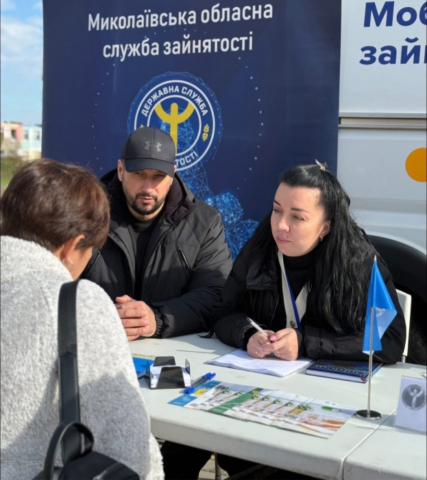 У листопаді 2023 року завдяки підтримці від ПРООН в Україні за фінансування Уряду Німеччини Миколаївщина одна з перших почала роботу мобільного центру. З того часу служба зайнятості вже 2 роки поспіль проводить виїзні зустрічі в найбільш постраждалі громади.
