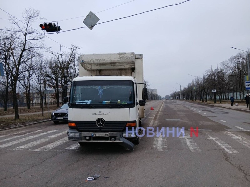 У Миколаєві на перехресті проспекту Богоявленського та вул. Старофортечної зіткнулися вантажівка Mercedes-Benz Atego і легковий автомобіль ВАЗ-2111.