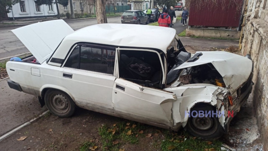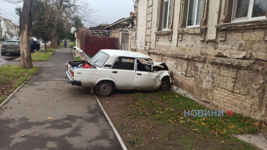 Вранці у вівторок, 9 грудня, на вул. Кузнецькій у Миколаєві автомобіль ВАЗ врізався у стіну житлового будинку.