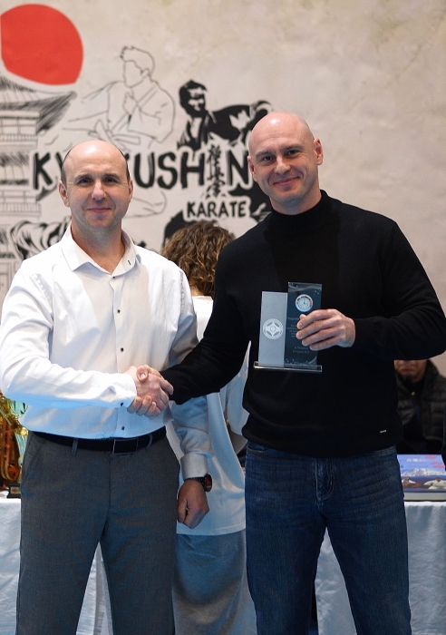 Голова ВПГО "Федерація кіокушин карате України" у Миколаївській області Юрій Галімонов вручив почесним гостям подяки за вагомий внесок у розвиток кіокушин карате та сприяння розвитку спортивного руху на Миколаївщині.