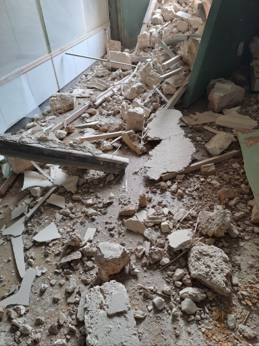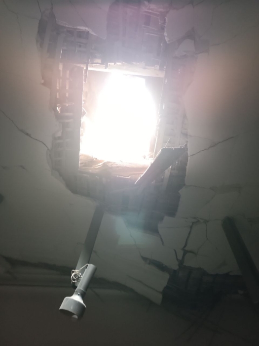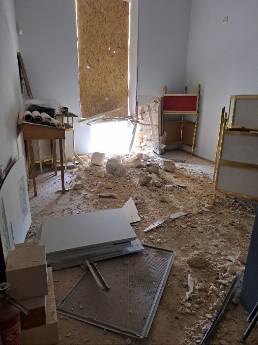 Будівля отримала численні пошкодження — третину споруди зруйновано вщент, пробито дах, пошкоджено стіни.