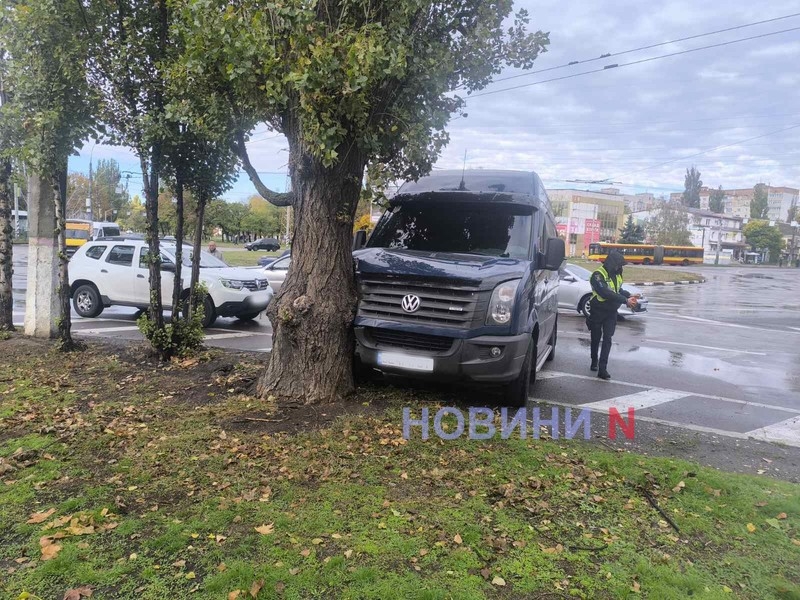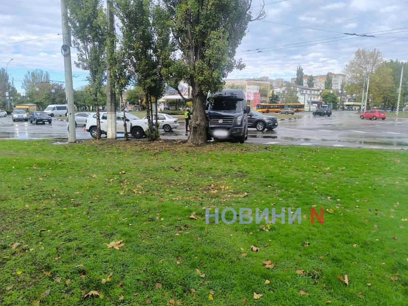 Вранці в неділю, 19 жовтня, на кільці біля Центрального автовокзалу у Миколаєві зіткнулися автомобілі Daewoo Lanos та мікроавтобус Volkswagen Crafter.