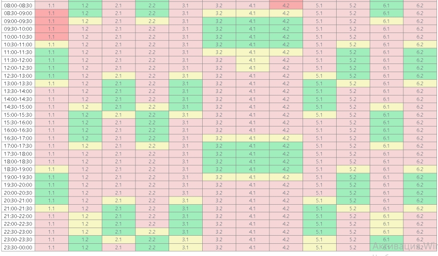4.1 – 03:00–09:00; 11:00–17:00; 19:00–00:00