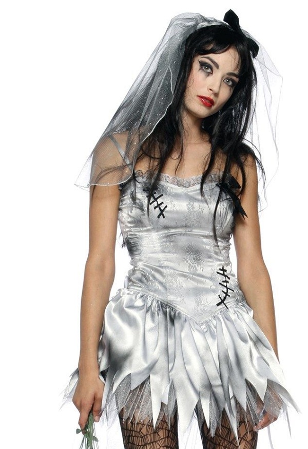 Популярний персонаж із відомого анімаційного фільму Тіма Бертона дуже сподобався дівчатам. По-перше, він чудово підходить для тематики Геловіна. По-друге, його костюм та грим досить прості. По-третє, той самий образ нареченої можна зробити як моторошним, так і милим і кумедним, якщо тобі цього хочеться. Сам костюм зазвичай складається з дещо пошарпаної і обірваної білої сукні, фати, якихось атрибутів весілля і, звичайно, гриму. Хтось може обійтися забіленим обличчям та чорними колами під очима, а хтось робить щось складніше та схоже на персонажа з “Трупа нареченої”.