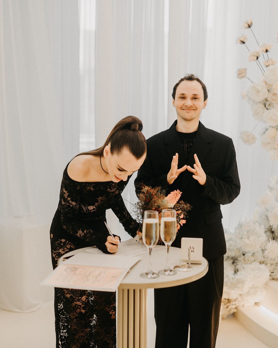 Актор і дизайнерка скромно розписалися в червні 2024 року, обравши для урочистості образи total black.