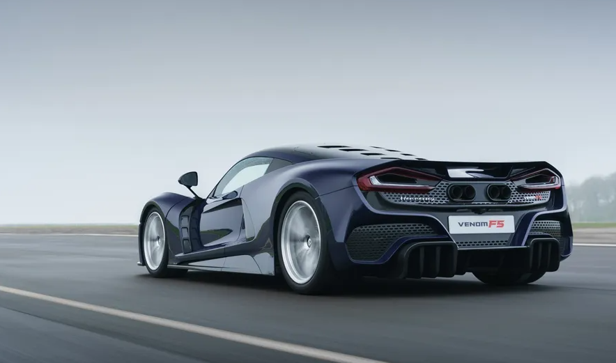 Американський суперкар Hennessey Venom F5 вражає не лише дизайном, а й потужністю. Його 6,6-літровий двигун V8 із подвійним турбонаддувом розвиває 1817 к.с. Авто прискорюється до 100 км/год лише за 2,6 секунди, а максимальна швидкість сягає 438 км/год. Виробник заявляє, що прагне побити власний рекорд і перевищити позначку у 480 км/год.