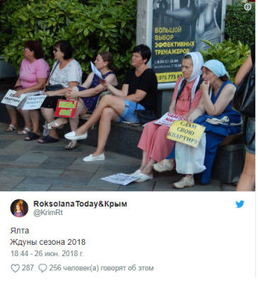 Пользователей социальных сетей рассмешила фотографии из оккупированного Крыма, на которой изображены женщины, пытающиеся сдать туристам свои квартиры, передает apostrophe.ua.