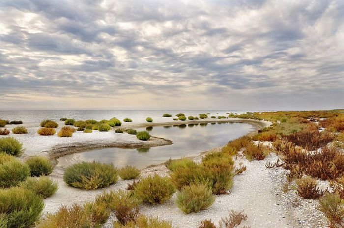 Песчаная коса в северо-западной части Кинбурнского полуострова между Днепровско-Бугским лиманом и Чёрным морем. Фотограф Анна Стрижекинь.