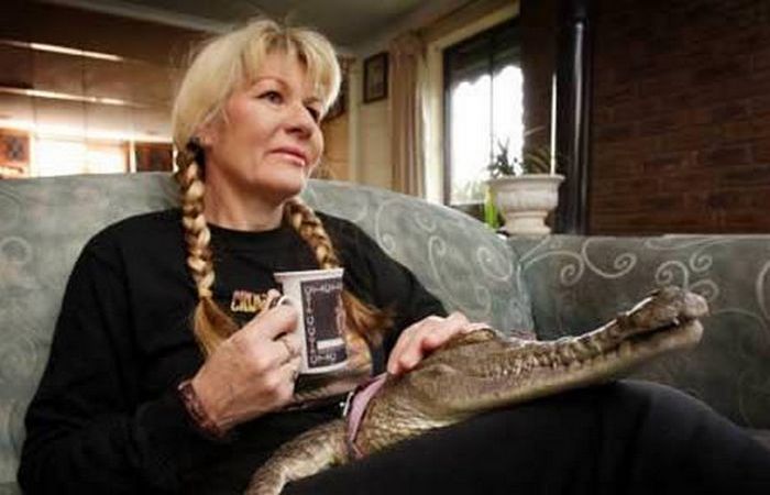 Австралийка Вики Лоуинг развелась с мужем, когда тот попросил ее отказаться от своего домашнего крокодила. 52-летняя Лоуинг растила полутораметровую рептилию в течение 13 лет, позволяла ей свободно передвигаться по дому и спать со своим сыном Эндрю в одной постели. Виктория приютила крокодила после того, как его подбросили на порог дома в 1996 году. Как заявила женщина, «мужья могут сами позаботиться о себе, но мой крокодил не может сам приготовить себе еду».