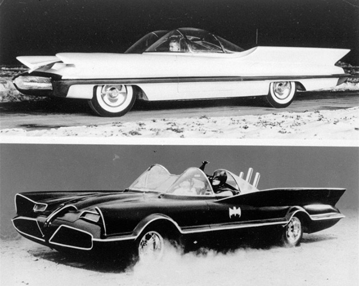Первым автомобилем Бэтмена в телевизионной версии стал именно такой автомобиль, который был нарисован на страницах комиксов. Создателем этой модели был Джордж Беррис. Он построил его на основе модели Lincoln Futur 1955 года. Бэтмобиль был не единственным автомобилем в истории Берриса. Можно вспомнить гоночный автомобиль из сериала «Семейка монстров», грузовик из сериала «Деревенщина из Беверли Хиллз» и автомобиль «КИТТ», который появился на экране в фильме «Рыцарь дорог».