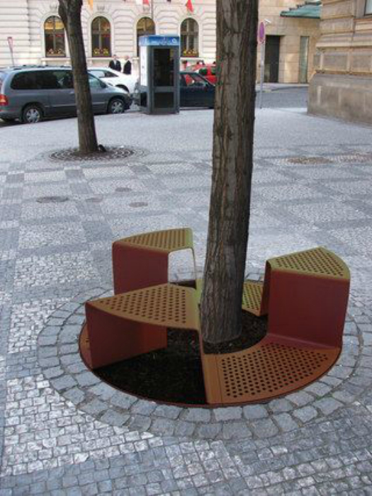 Места для отдыха из перфорированного металла, которые не мешают жизни растений.