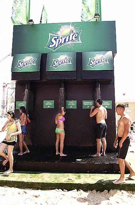 Вместо рекламных плакатов - душевые кабинки на городских пляжах.
