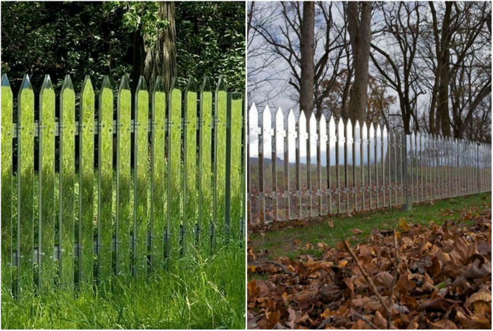 Зеркальный забор, который меняется вместе с временами года.