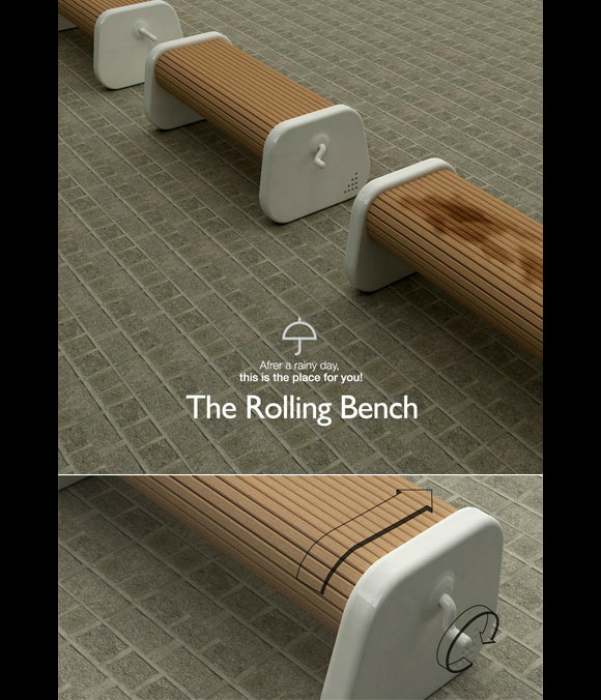 Лавочка с вращающимся механизмом, который позволяет поменять мокрую или грязную часть на сухую.