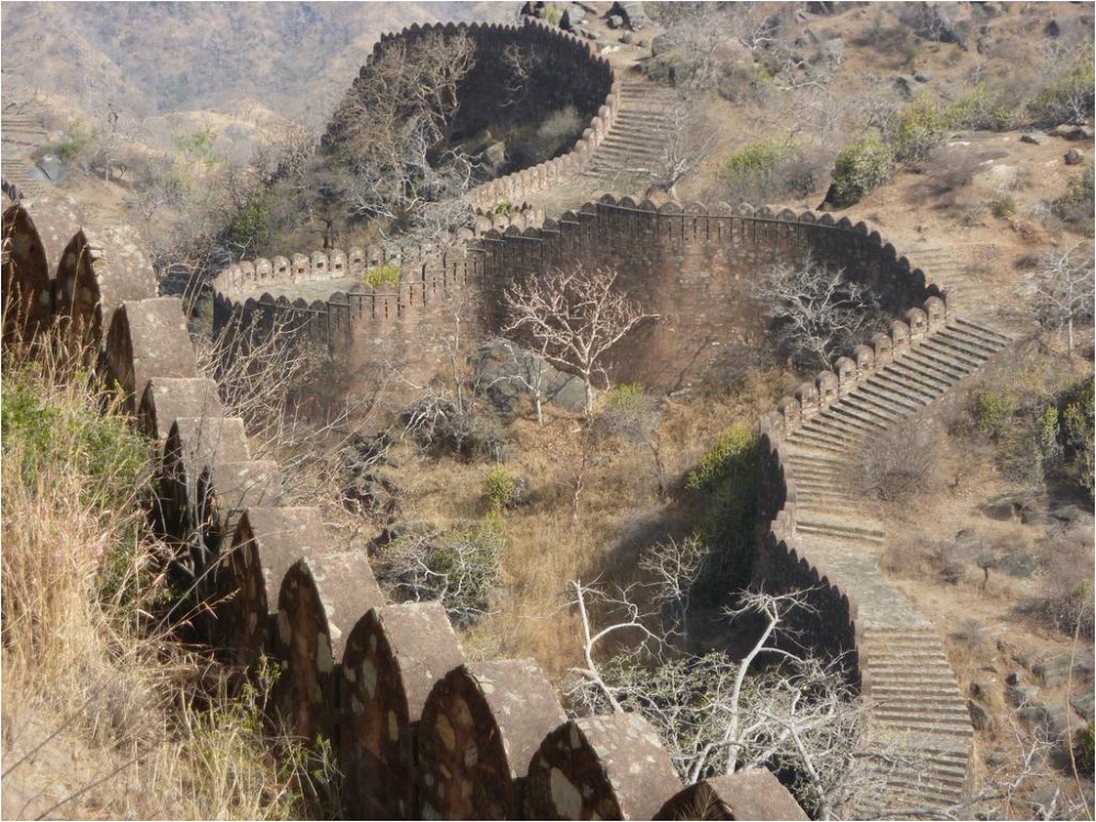 Форт Кумбалгарх окружен уникальной стеной, которая в древности именовалась «стражем смерти». Ее протяженность составляет 36 км, а ширина в некоторых местах достигает 8 м. Она непрерывно тянется по всему периметру форта, веками защищая его от незваных захватчиков. Чтобы только возвести ее, понадобилось целое столетие — с XV по XVI век. За всю историю войн, которые увидела Великая Индийская стена, она ни разу не рухнула и не впустила врагов в форт. Лишь Великая Китайская стена длиннее «стража смерти», или, как еще называли индийскую стену, «глаза Мевара».